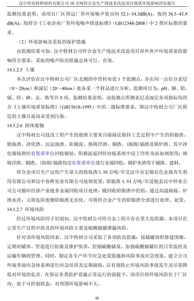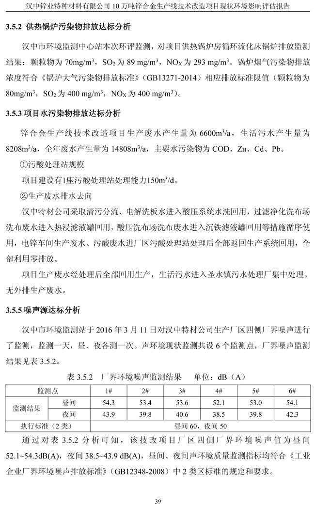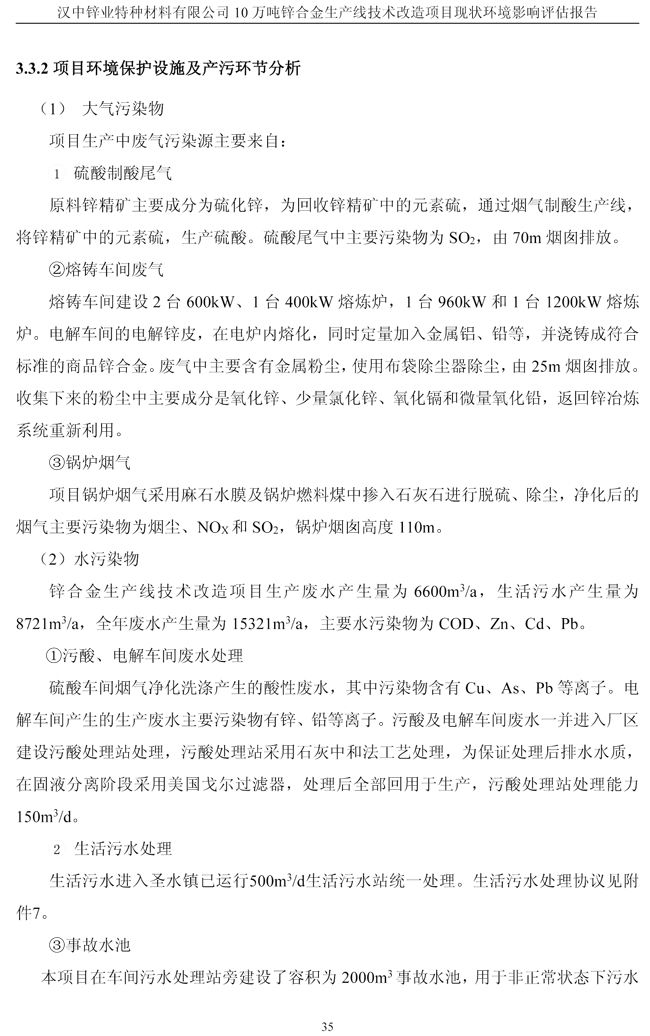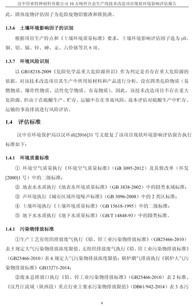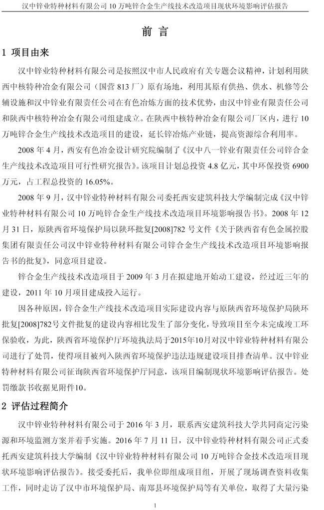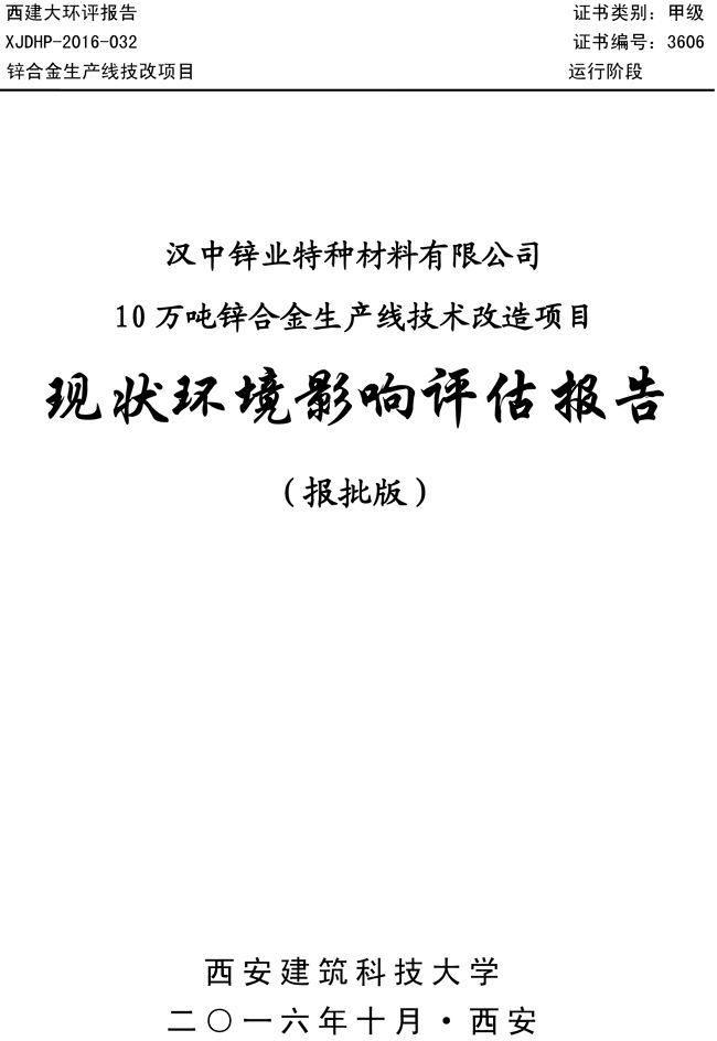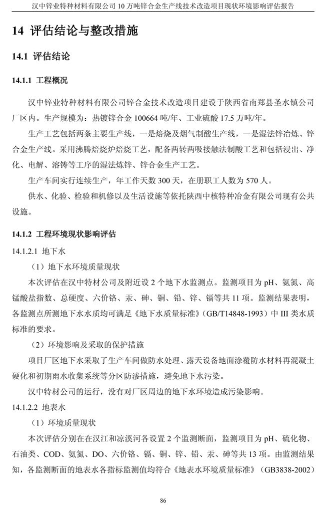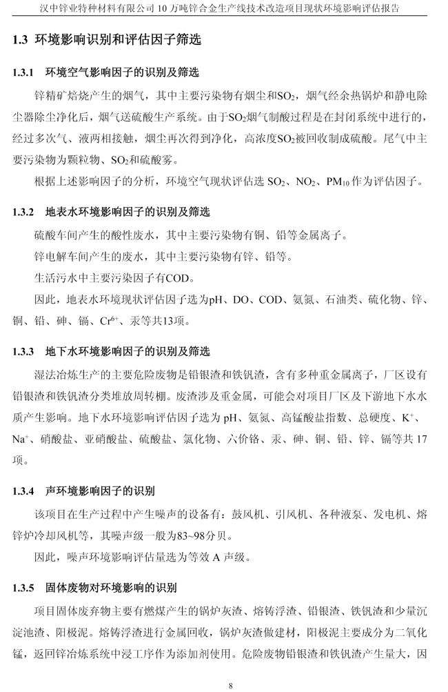 漢中鋅業(yè)公司鋅合金項目現(xiàn)狀環(huán)境影響評估報告