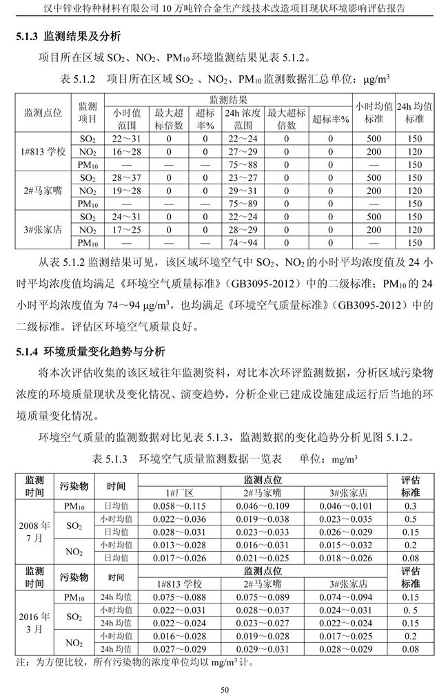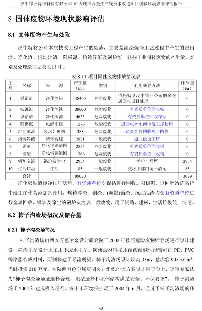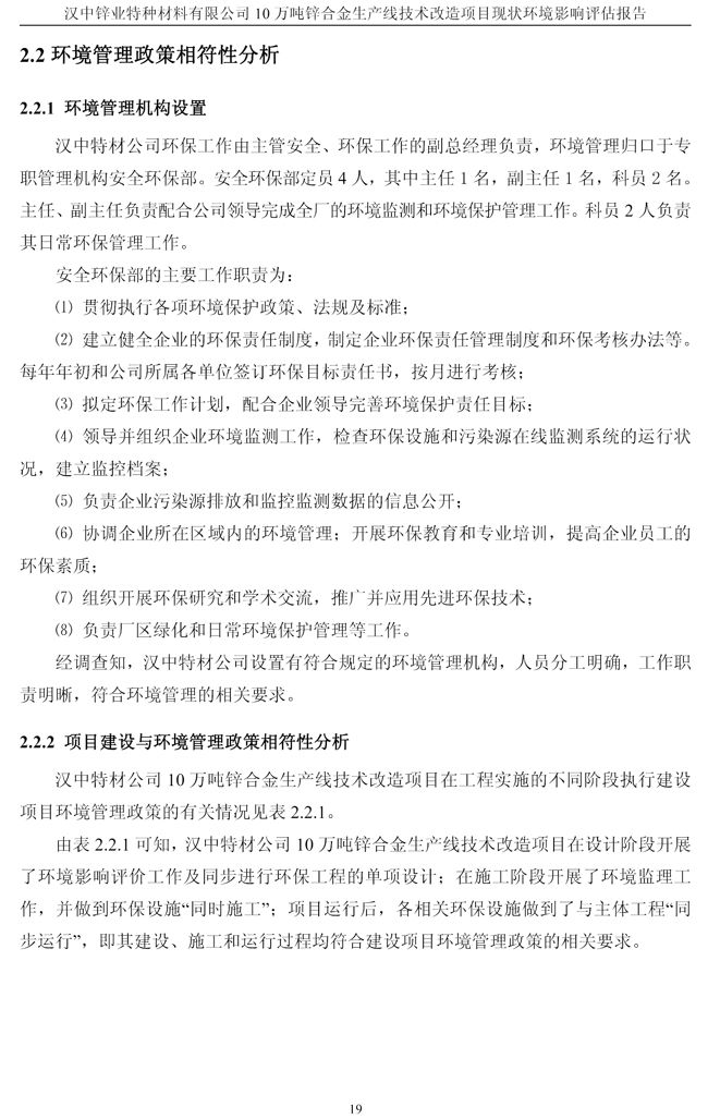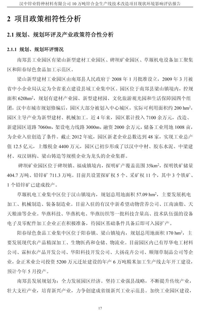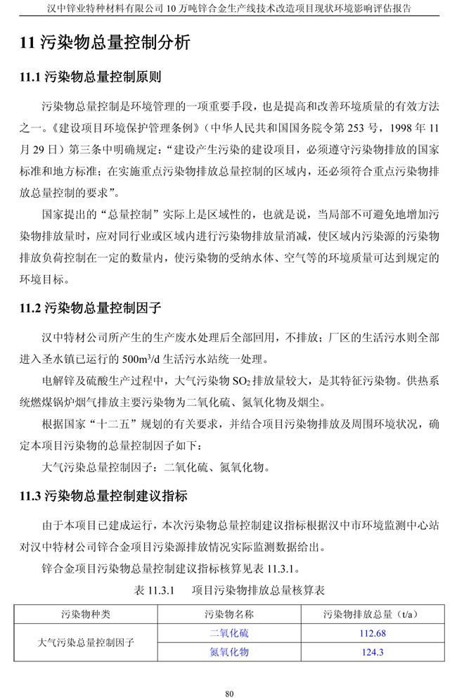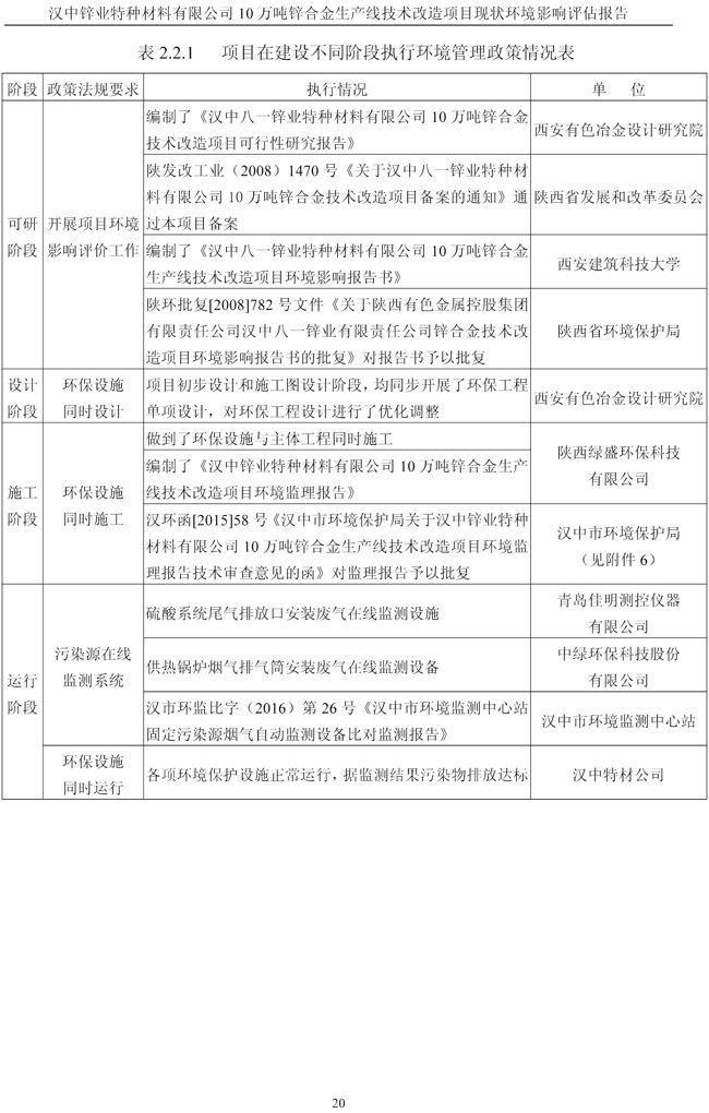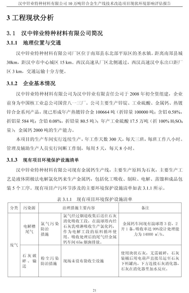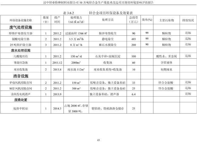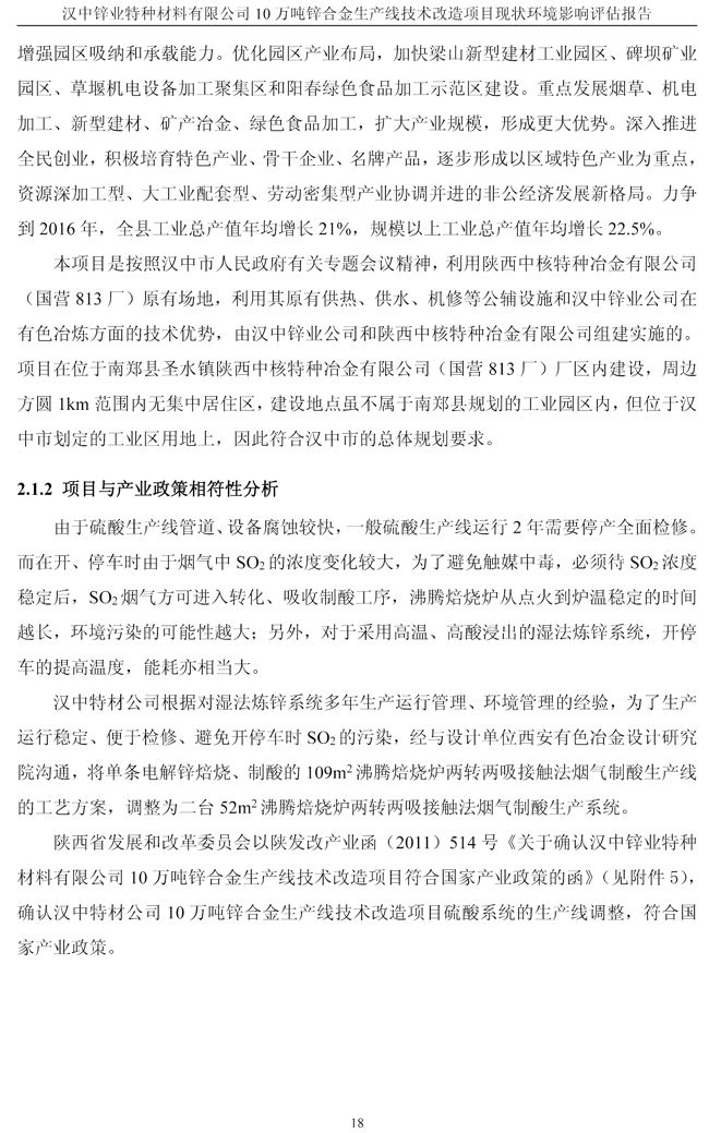 漢中鋅業(yè)公司鋅合金項目現(xiàn)狀環(huán)境影響評估報告