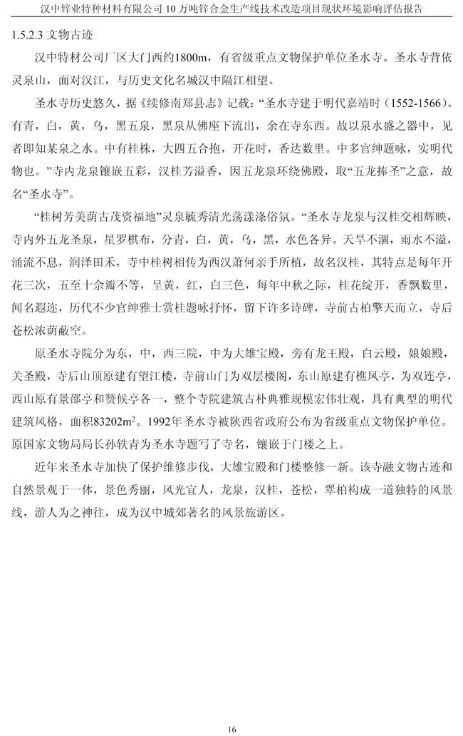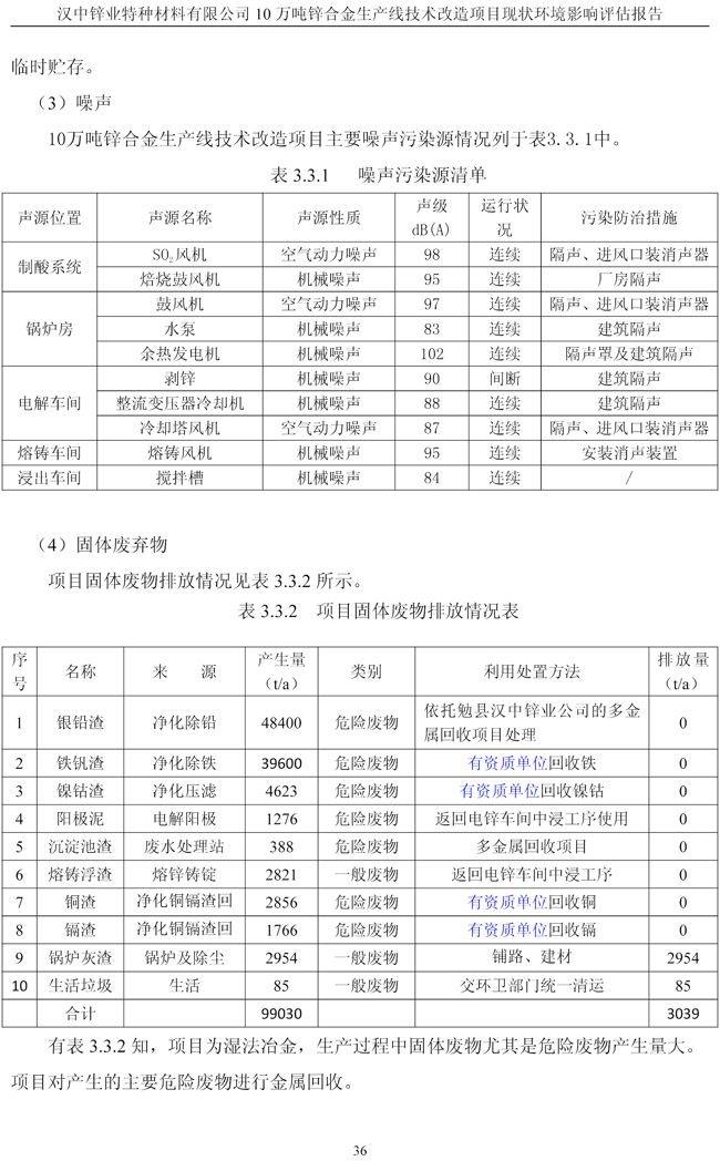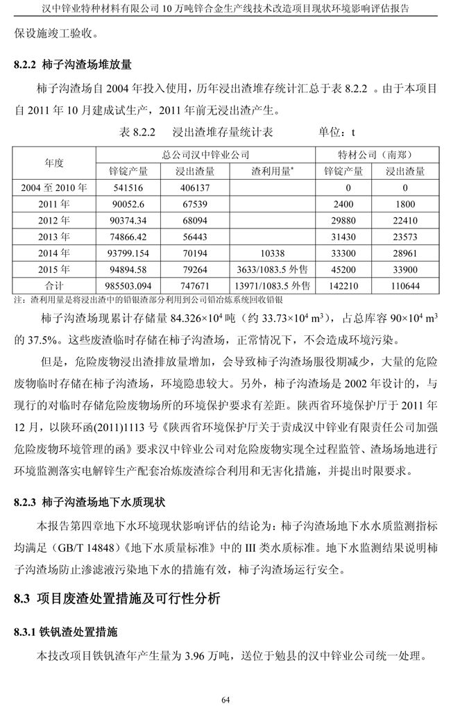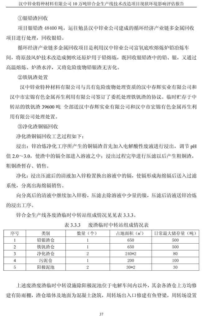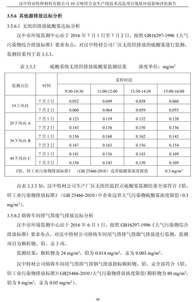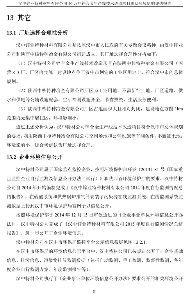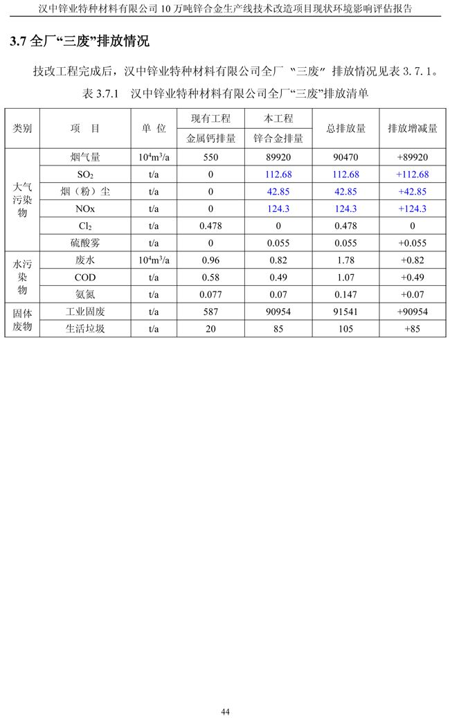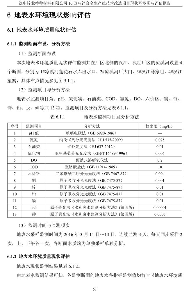 漢中鋅業(yè)公司鋅合金項目現(xiàn)狀環(huán)境影響評估報告