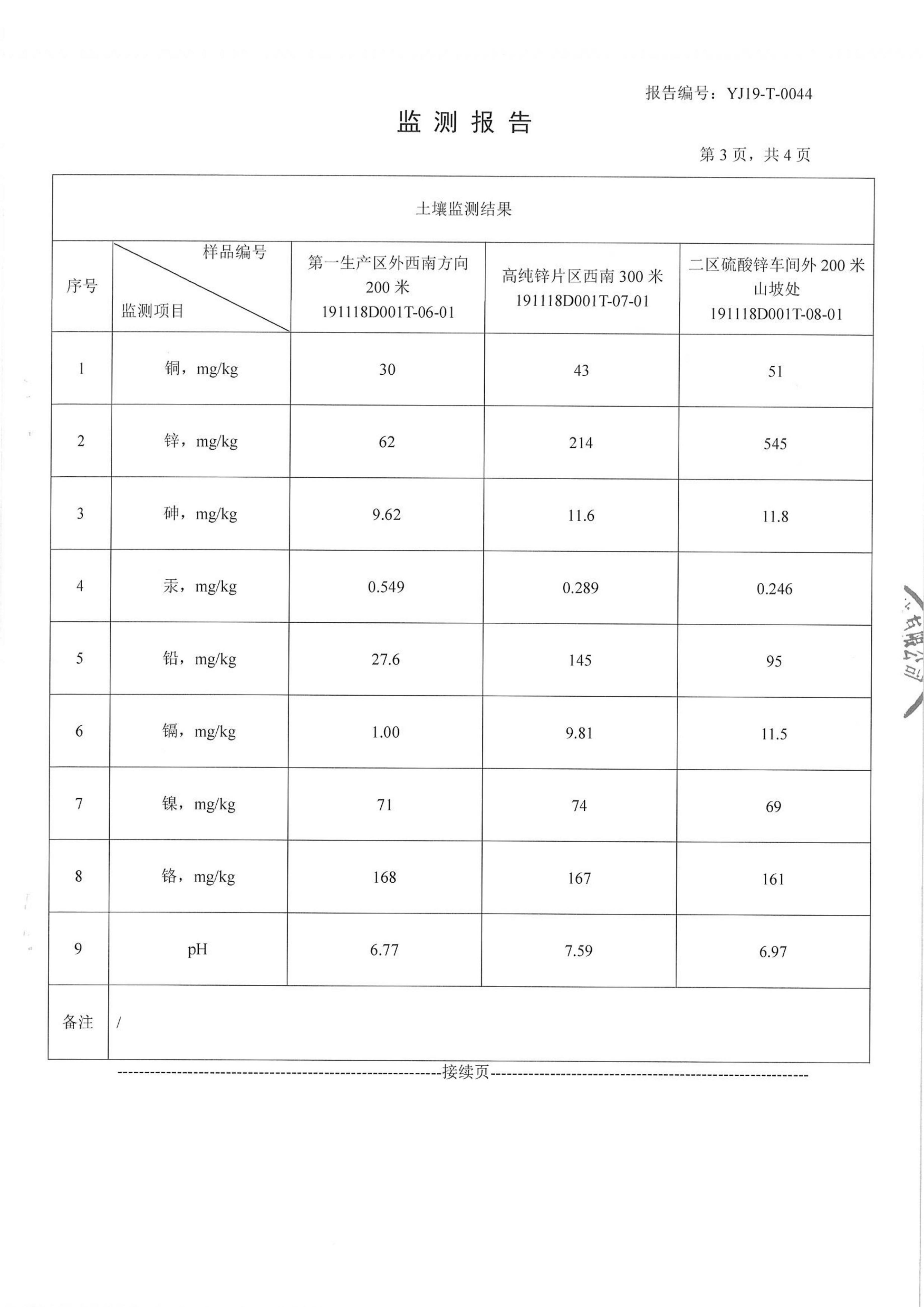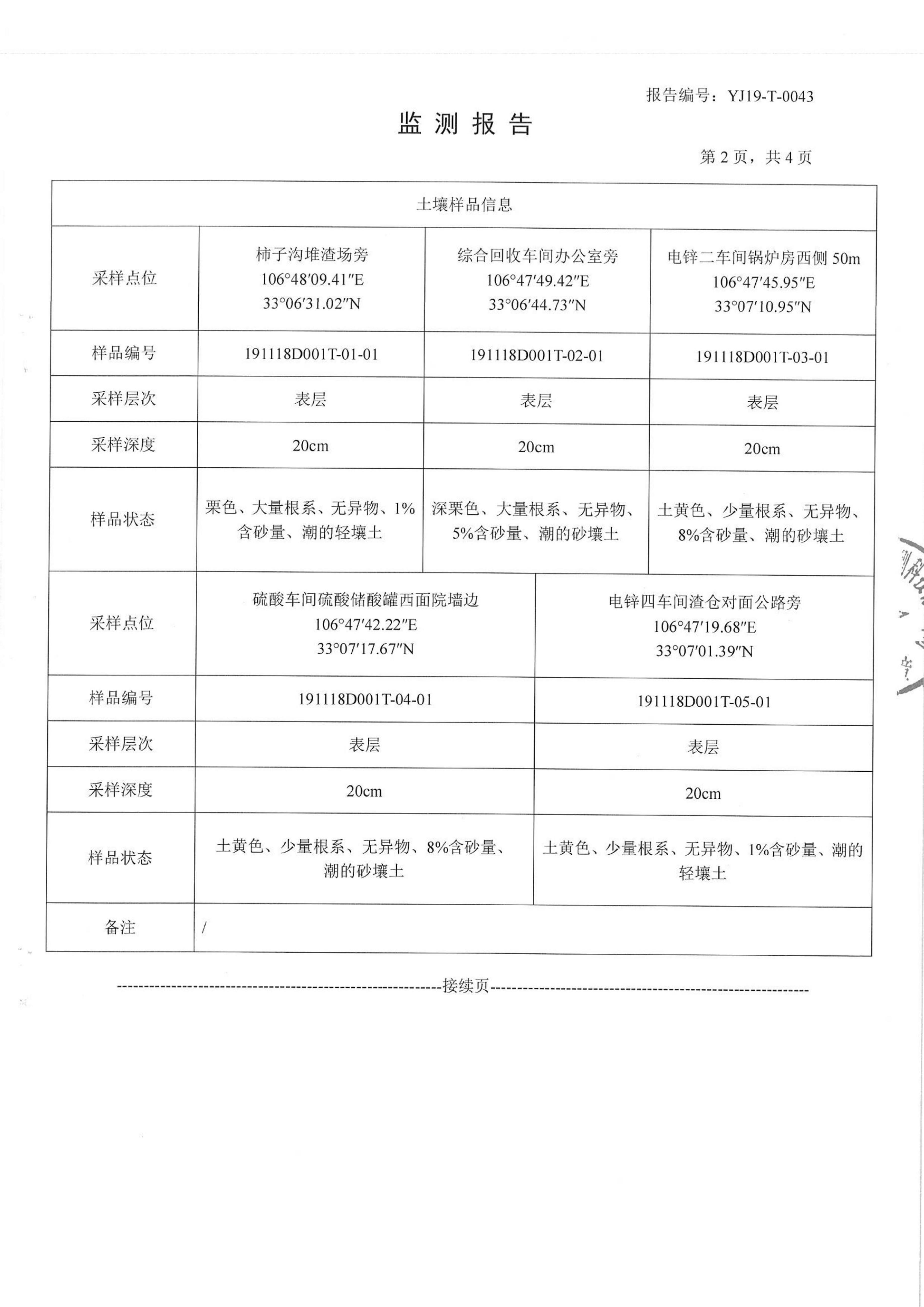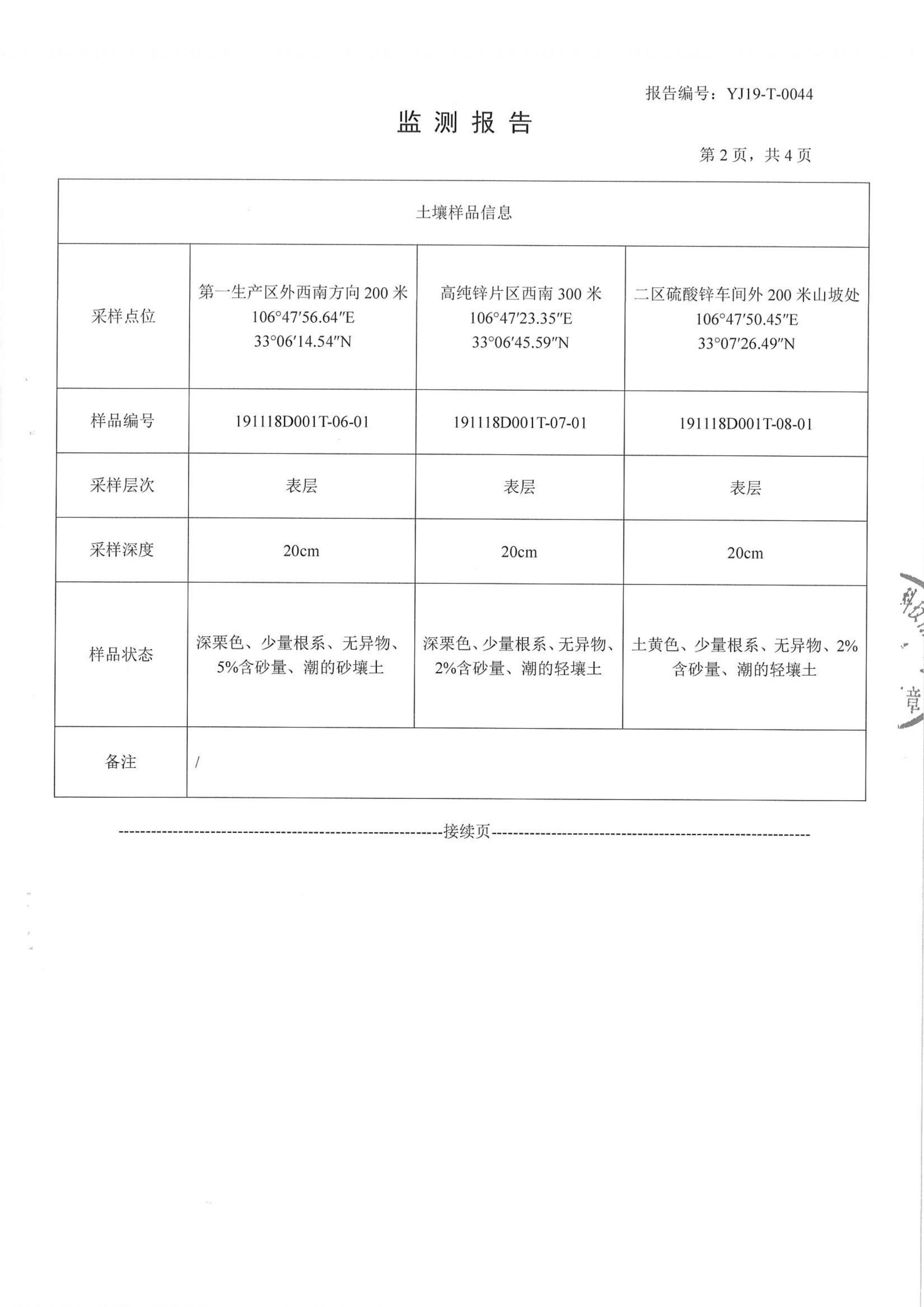 漢中鋅業有限責任公司2019年度土壤自行監測公示