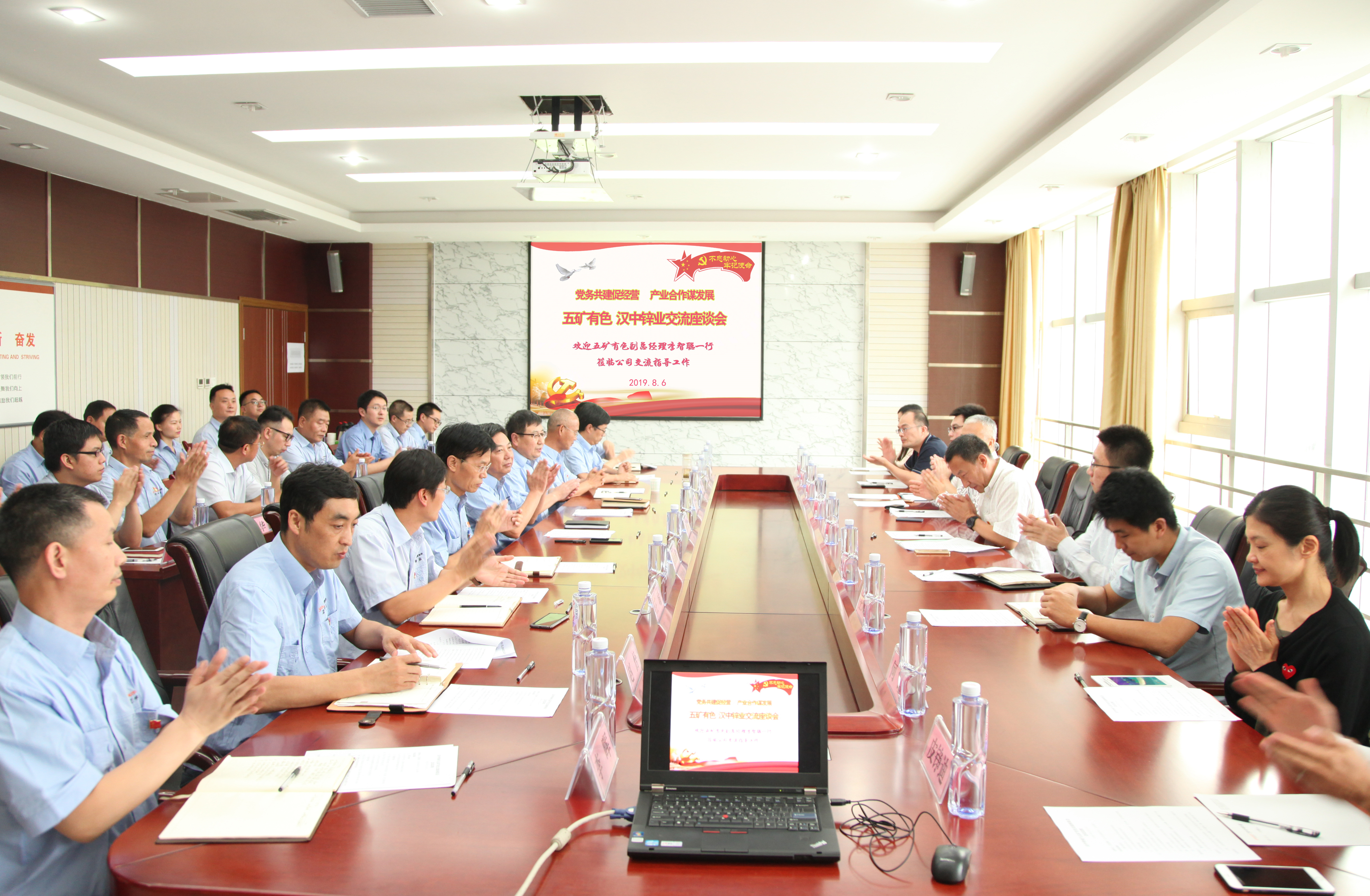 8月6日,五礦有色金屬股份有限公司副總經理李智聰、鉛鋅部總經理王學軍一行來公司開展“黨務共建促經營、產業合作謀發展”主題交流活動。公司黨委書記、董事長何學斌及公司班子成員、經營系統主要負責人及業務相關人員參加了交流座談會。何學斌與李智聰簽訂了漢中鋅業和五礦有色戰略合作框架協議。