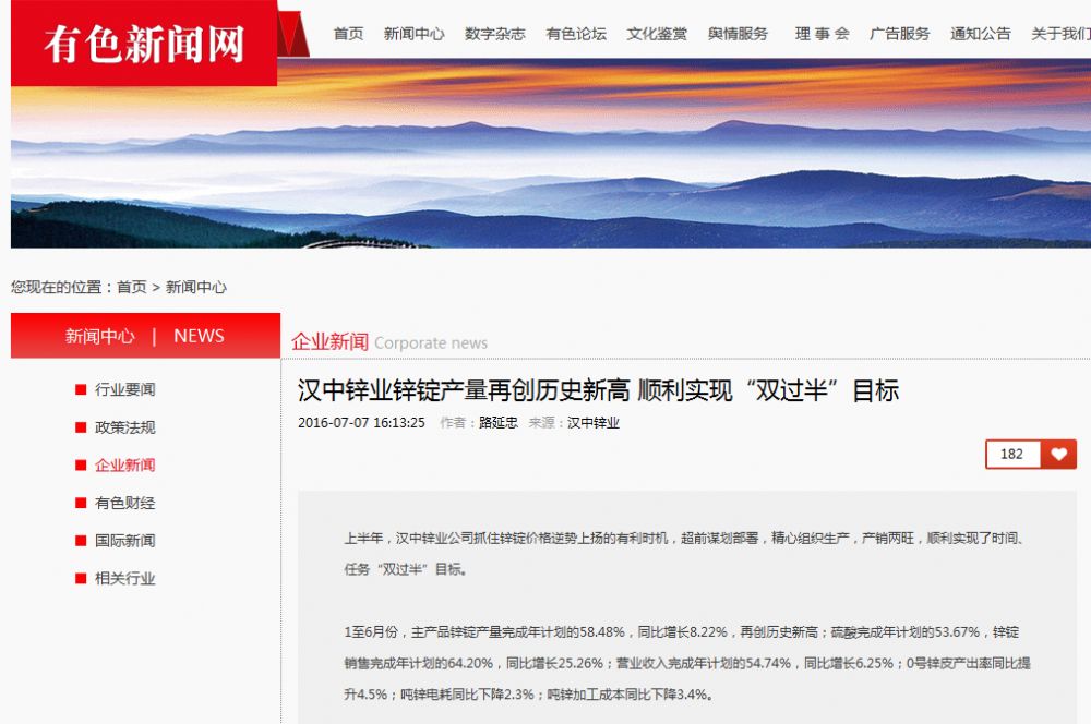 有色新聞網(wǎng):漢中鋅業(yè)鋅錠產(chǎn)量再創(chuàng)歷史新高 順利實(shí)現(xiàn)“雙過(guò)半”目標(biāo)
