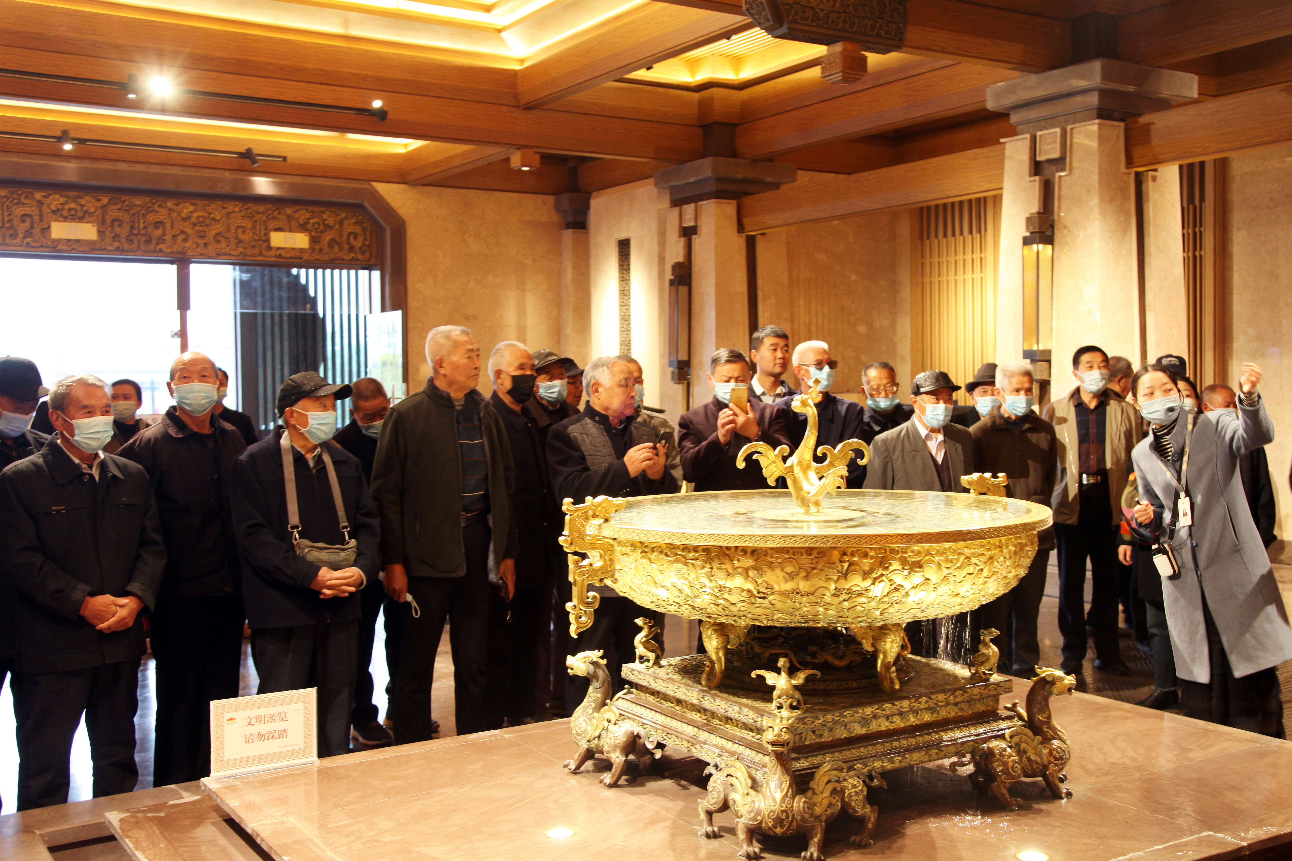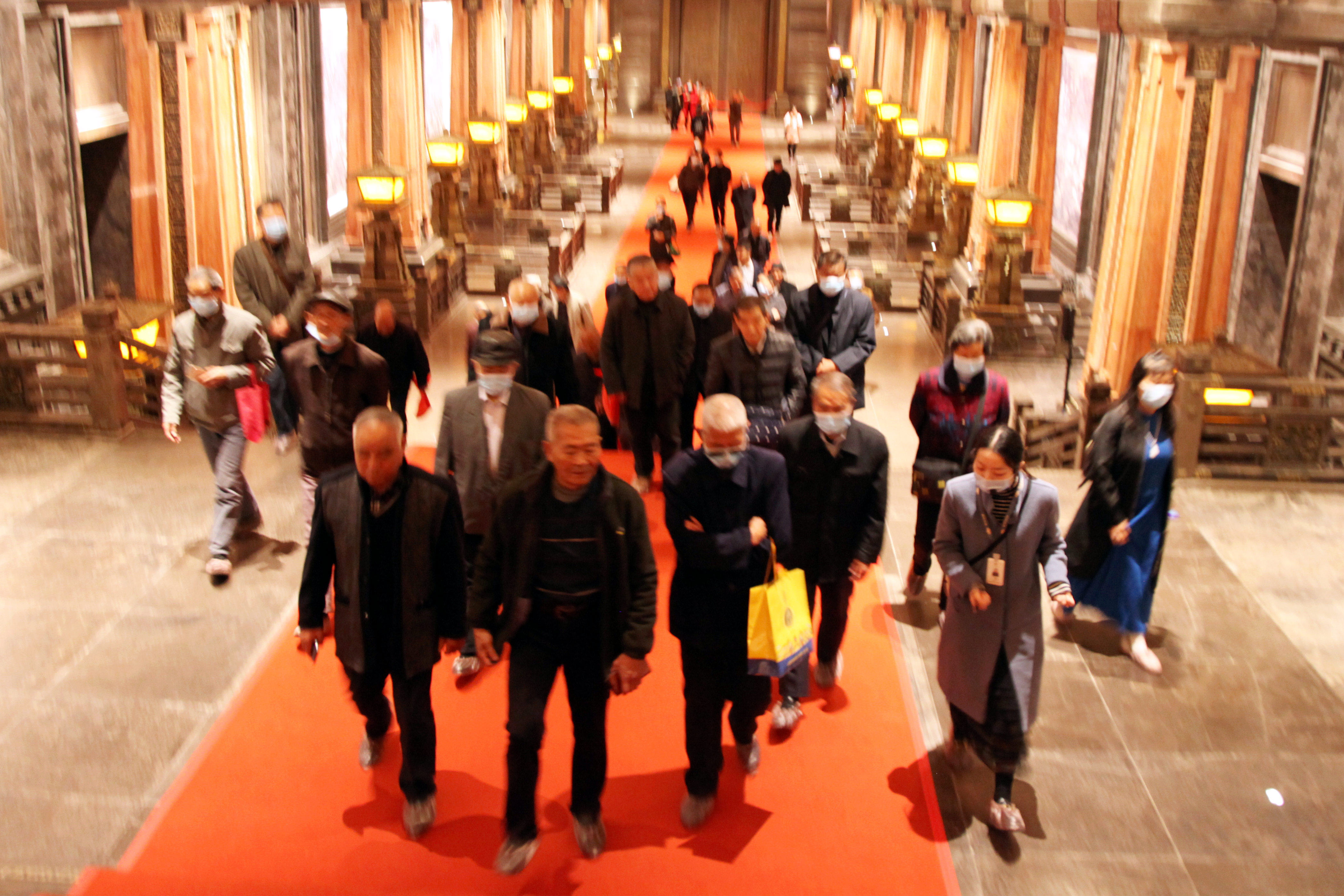 在導游的引領下走進漢文化博物館內,首先映入眼簾的是氣勢恢宏的水下長廊,鋪著紅毯的臺階層層疊起、栩栩如生的壁畫在走廊兩側一一排開、精雕細琢的屋頂裝飾金碧輝煌,霎時間將大家帶入那久遠的大漢夢境之中!