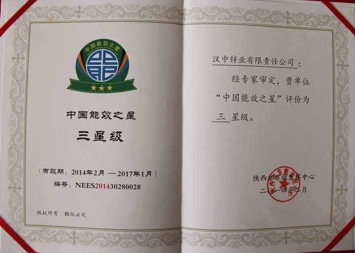 本次省級“能效之星”三星級企業稱號,是繼公司2012年8月被國家工業和信息化部評定為“有色金屬行業重點用能產品能效標桿指標及企業”后獲得的又一殊榮。