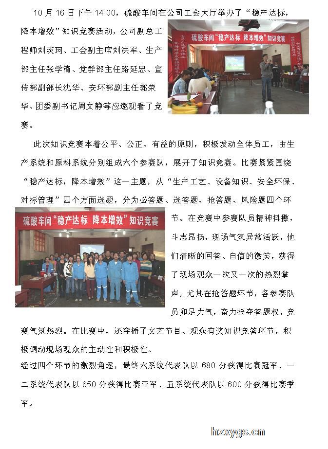 硫酸車間舉辦“穩(wěn)產(chǎn)達標,降本增效”知識競賽活動