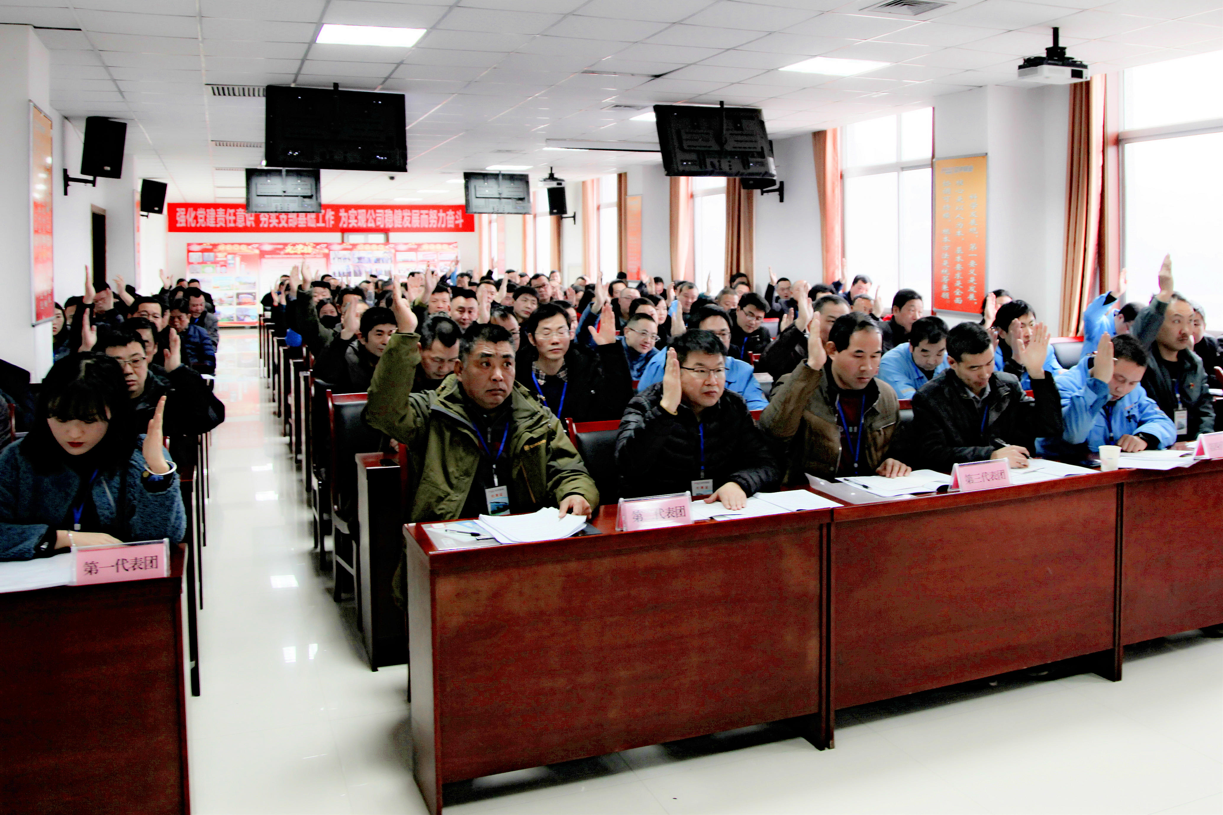 在全黨上下深入學習貫徹黨的十九屆四中全會精神之際,公司工會第三次會員代表大會于2019年12月31日隆重召開。來自公司各基層工會的121名正式代表、12名列席代表匯聚一堂,回顧過去,謀劃未來。公司黨委書記、董事長何學斌主持大會并講話;黨委副書記、總經(jīng)理王正民等經(jīng)營層班子成員出席會議。